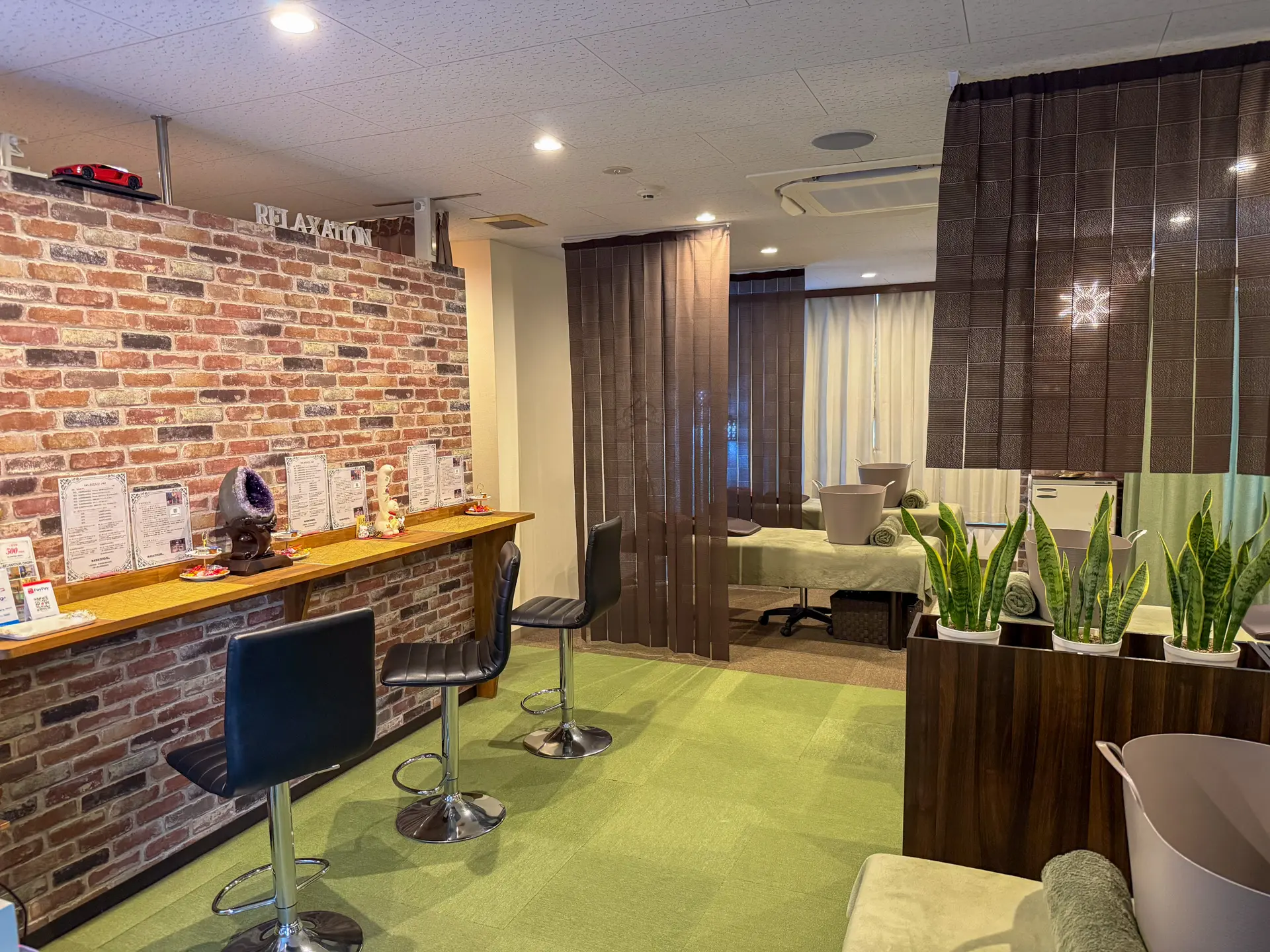 施術後はお飲み物をご用意しております。お会計は現金・各種キャッシュレスに対応。